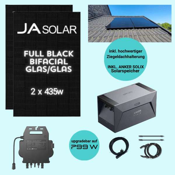 MYSOLARPLANT ANKER-Komplettset „Ziegeldach“ 870w Glas-Glas inklusive Batteriespeicher
