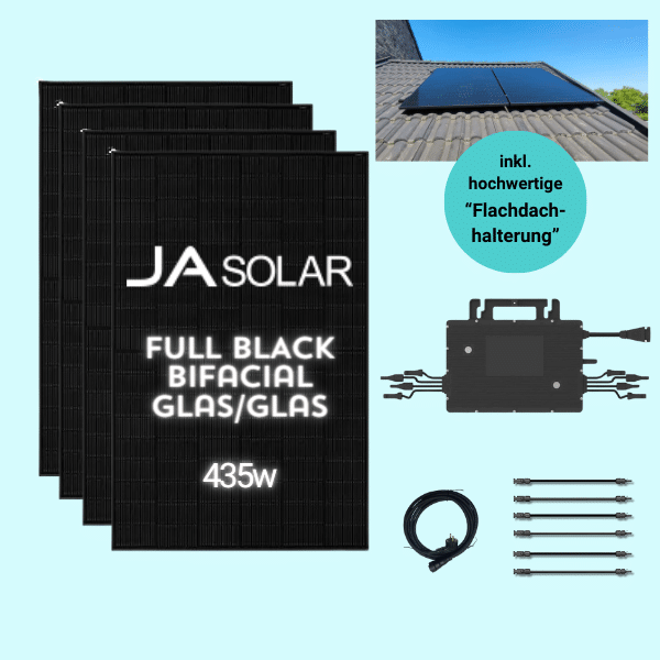 - 4x Solarmodule JA Solar (435 Wp) JAM54D41-435/LB im Full-Black-Design