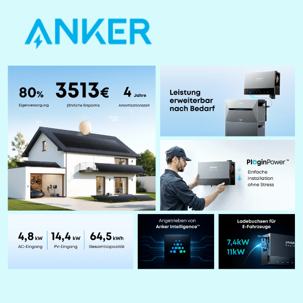 Durch die Bündelung von bis zu vier Solarbank 3 Pro Einheiten (je 1.200 W) erreicht das System eine maximale AC-Einspeiseleistung von 4.800 W ins Hausnetz. Damit wird das klassische Balkonkraftwerk zu einer vollwertigen Haus-Solaranlage.