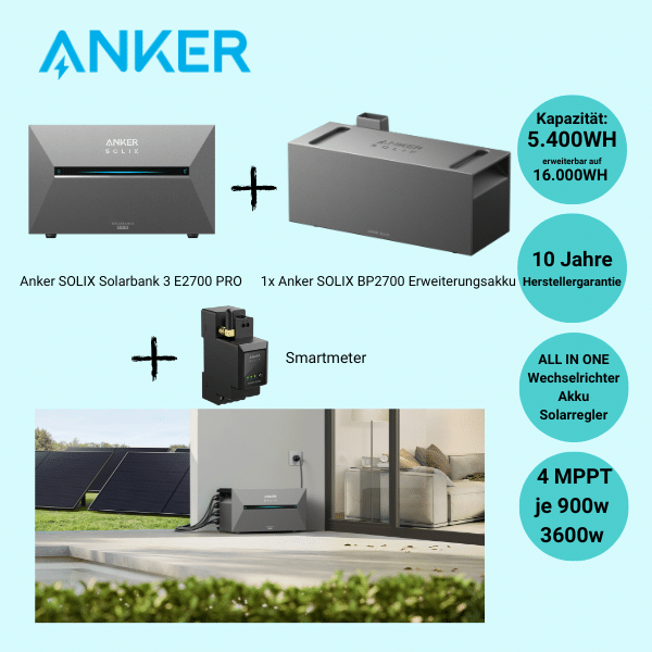 Hinweis: Wenn Sie kein SmartMeter benötigen, empfehlen wir das ANKER SOLIX PRO 3 + BP2700 Bundle ohne SmartMeter.