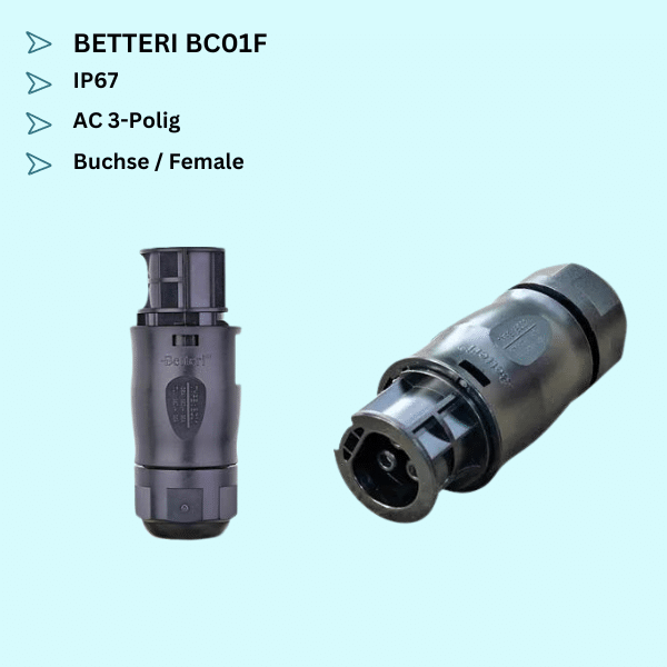 Die BETTERI Netzanschlussbuchsen (BC01) bieten einen sicheren 3-poligen Netzanschluss.